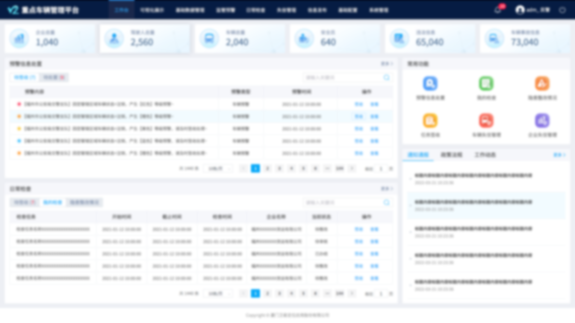 針對(duì)重點(diǎn)車輛安全隱患源頭管理需要,通過對(duì)駕駛員、車輛、企業(yè)、事故、違法等多維數(shù)據(jù),實(shí)現(xiàn)重點(diǎn)車輛日常安全檢查及異常告警的全閉環(huán)數(shù)字化管理,助力道路運(yùn)輸企業(yè)更有效地落實(shí)主體責(zé)任、輔助主管部門更具針對(duì)性地實(shí)施行業(yè)監(jiān)管,為道路運(yùn)輸安全提供更加堅(jiān)實(shí)可靠地保障 。