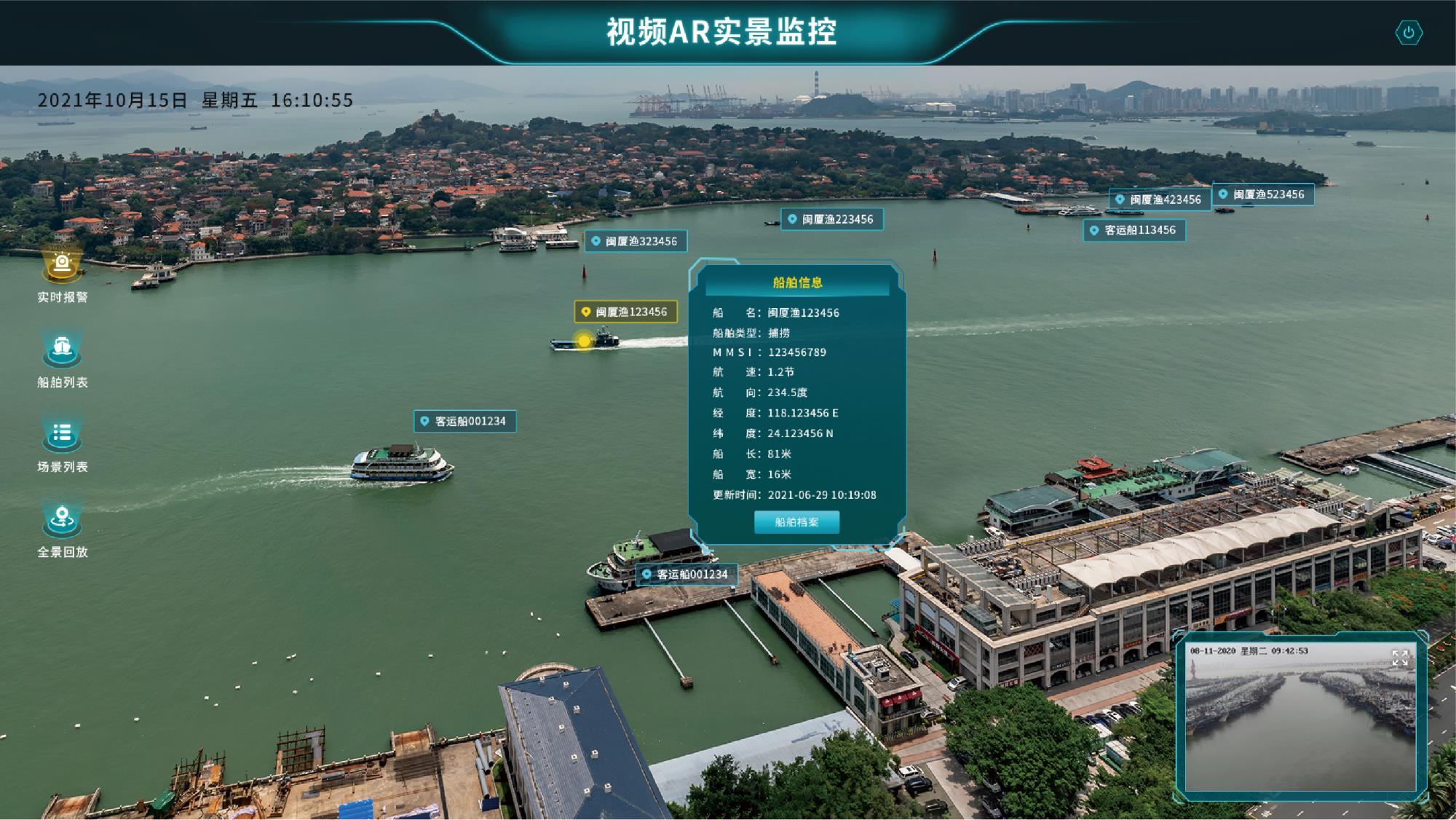 系統(tǒng)接入船舶檔案數(shù)據(jù)、船舶進出港計劃數(shù)據(jù)、船舶載貨數(shù)據(jù),并與視頻、雷達、北斗 / AIS 信息融合后進行智能計算,為港航監(jiān)控人員提供了基于視頻畫面的信息整合及智能提醒功能,對指揮中心遠程決策提供了強有力的支撐。